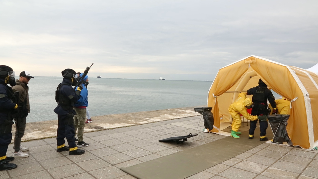 In the period 3-4 May the Greek anti-terrorism exercises in Thessaloniki Concert Hall (3rd May - full day exercise) and Hellenic Police Training Academy of Veria city (4th May - half day exercise) were performed by the KEMEA and EKAM teams of COBRA project. The team of EKAM demonstrated all the new equipment and tactical knowledge during the first and the second days of exercises. Demonstrations, debriefing and media interviews were given by the local organizers KEMEA and EKAM.